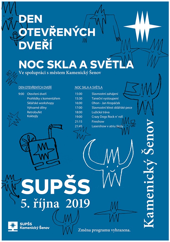 SUPŠS ve spolupráci s Městem Kamenický Šenov Vás srdečně zve na Den otevřených dveří a Noc skla a světla