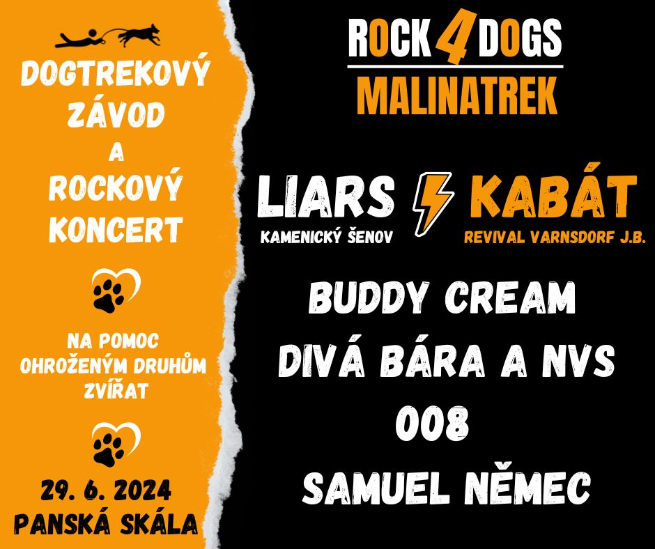 Již 4. ročník dogtrekového závodu a rockového koncertu na pomoc ohroženým druhům zvířat proběhne v sobotu 29.6. na parkovišti u Panské skály.