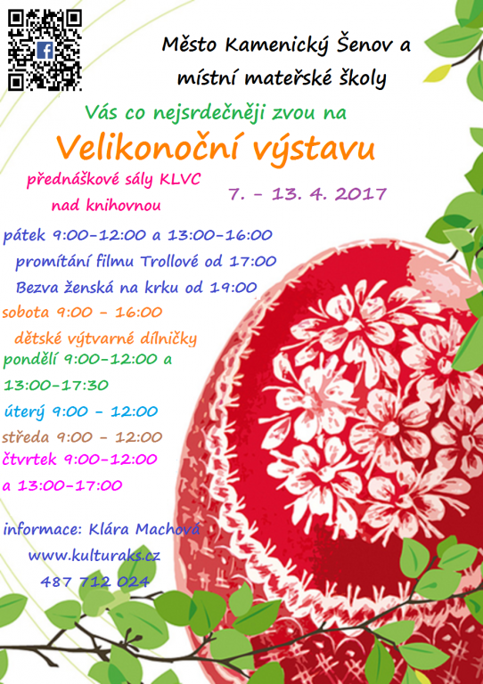 Město Kamenický Šenov a místní mateřské školy Vás co nejsrdečněji zvou na VELIKONOČNÍ VÝSTAVU v přednáškových sálech KLVC nad knihovnou.