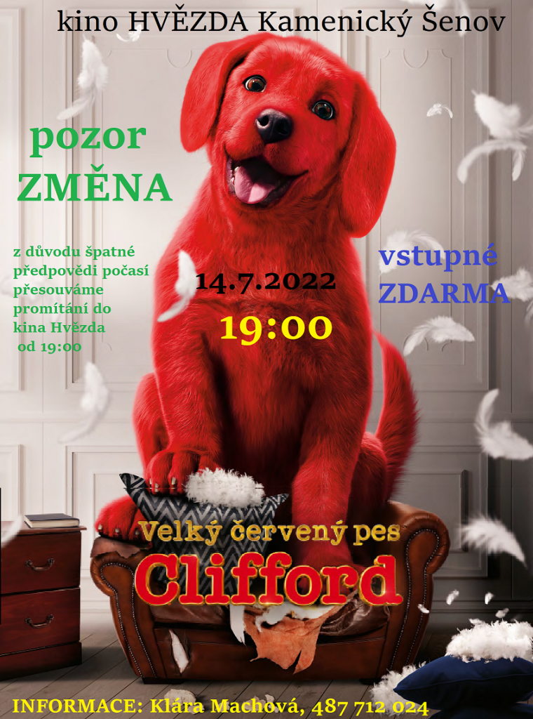 Z důvodu předpovídaného deště na zítřejší odpoledne a večer jsme se rozhodli přesunout dětem film do kina Hvězda - PROMÍTÁME JIŽ OD 19 HODIN NA SÁLE KINA.
