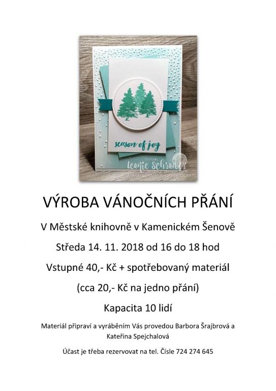 Městská knihovna Vás srdečně zve ve středu 14.11. od 16. do 18.h na výrobu vánočních přání.