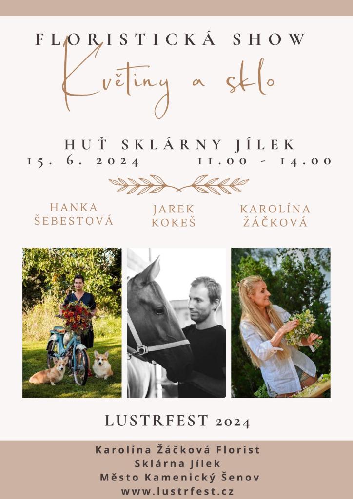 - 11:00-13:00 - charitativní floristická show na huti Květiny a sklo mistrů ČR (Kokeš, Šebestová, Žáčková)